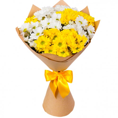 Хризантема кустовая — 9 шт, крафт, лента