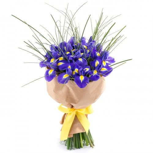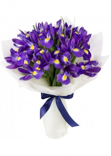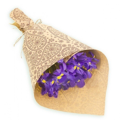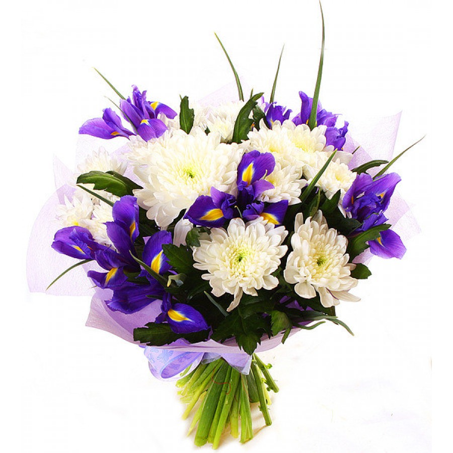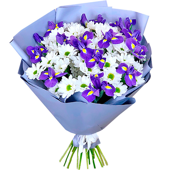 Хризантема кустовая 7шт, ирис 15шт, упаковка, лента