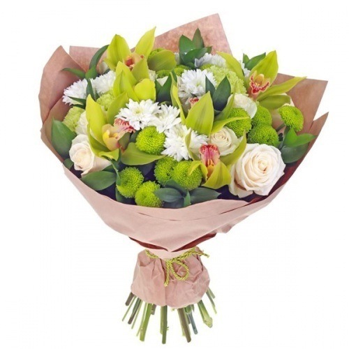 Орхидея цимбидиум -5 шт, писташ, оазис, крафт, лента.