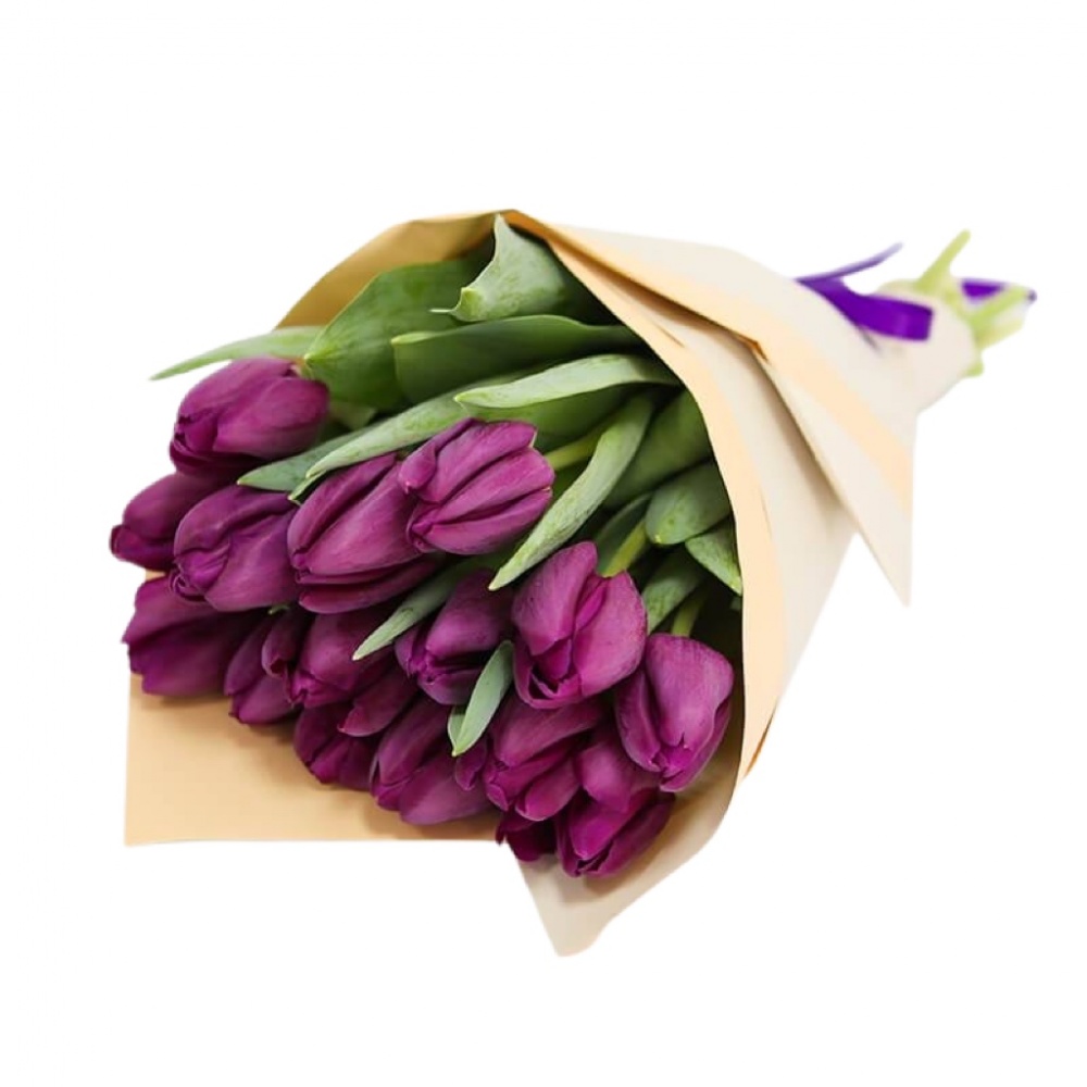Букет из 21 фиолетового тюльпана в интернет-магазине «Нацвету». При заказе от 2000 рублей доставка по Барнаулу бесплатная (за исключением ночного времени и отдаленных районов).