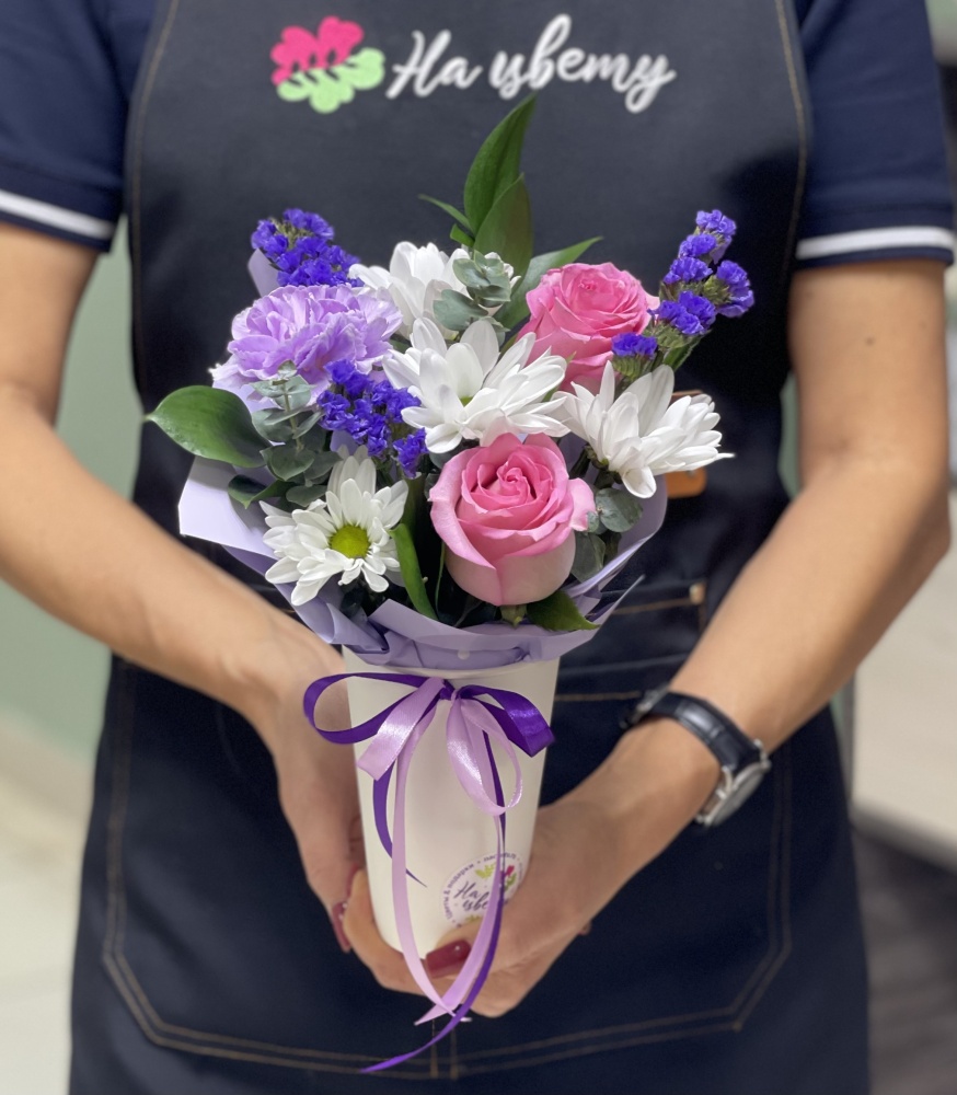 Если у вас нет времени или возможности подарить цветы в стаканчике лично, то мы это можем сделать за вас. У нас работает профессиональная служба доставки цветов с грамотными логистами и опытными курьерами. Заказанный у нас букет не заставит себя долго ждать.