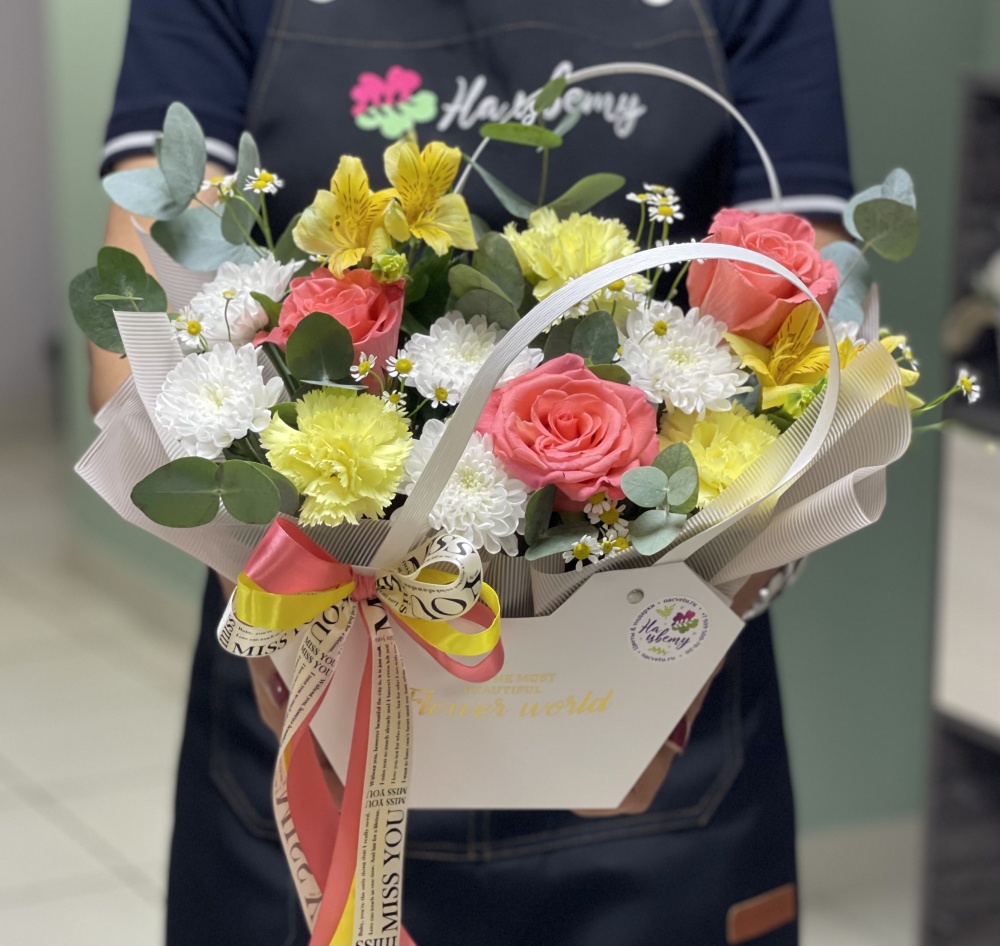 В нашем интернет-магазине "На цвету" вы сможете найти красивые и аккуратные цветы в сумочке. Наши профессиональные флористы подберут наиболее красивый по вашим критериям букет. Стоимость такого подарка уж точно порадует каждого, кто желает оригинально удивить другого человека.