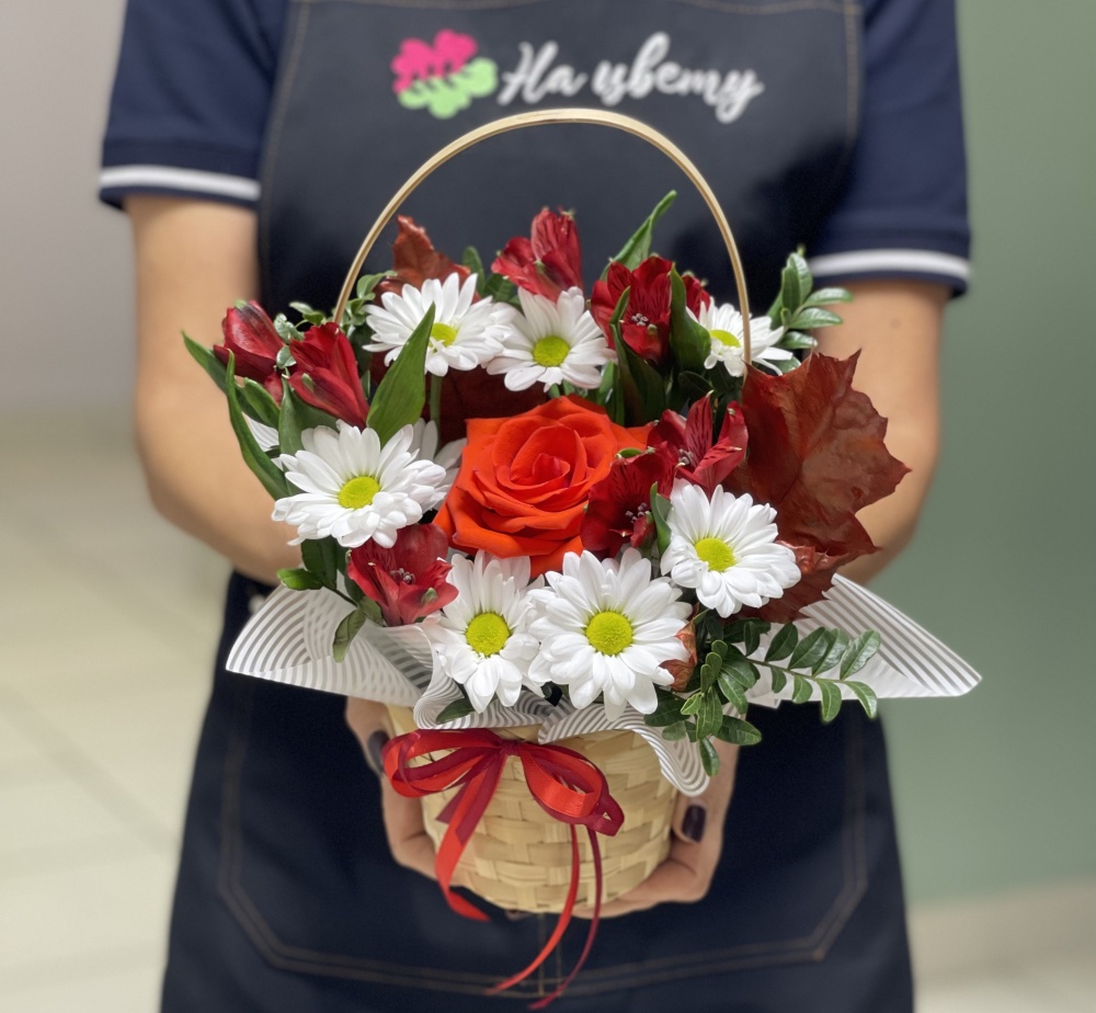 - Аккуратная и быстрая поставка цветов в корзине и не только.