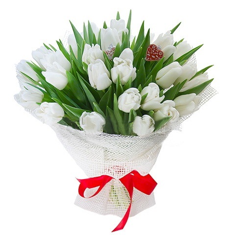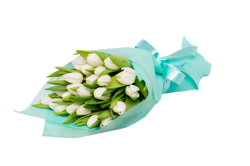 Тюльпан — 25 шт, сетка, лента, декор