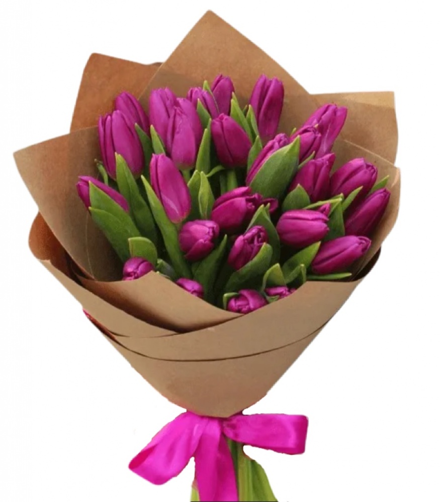 тюльпаны 25 шт, крафт, лента