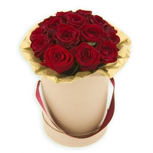 Роза Эквадорская 50см 15шт, коробка шляпная 18см, оазис, лента