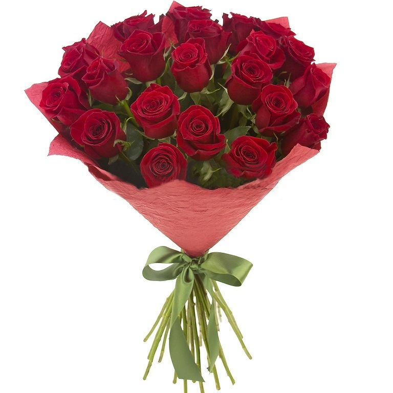 Роза Эквадорская 50см — 21шт, жатый крафт, лента