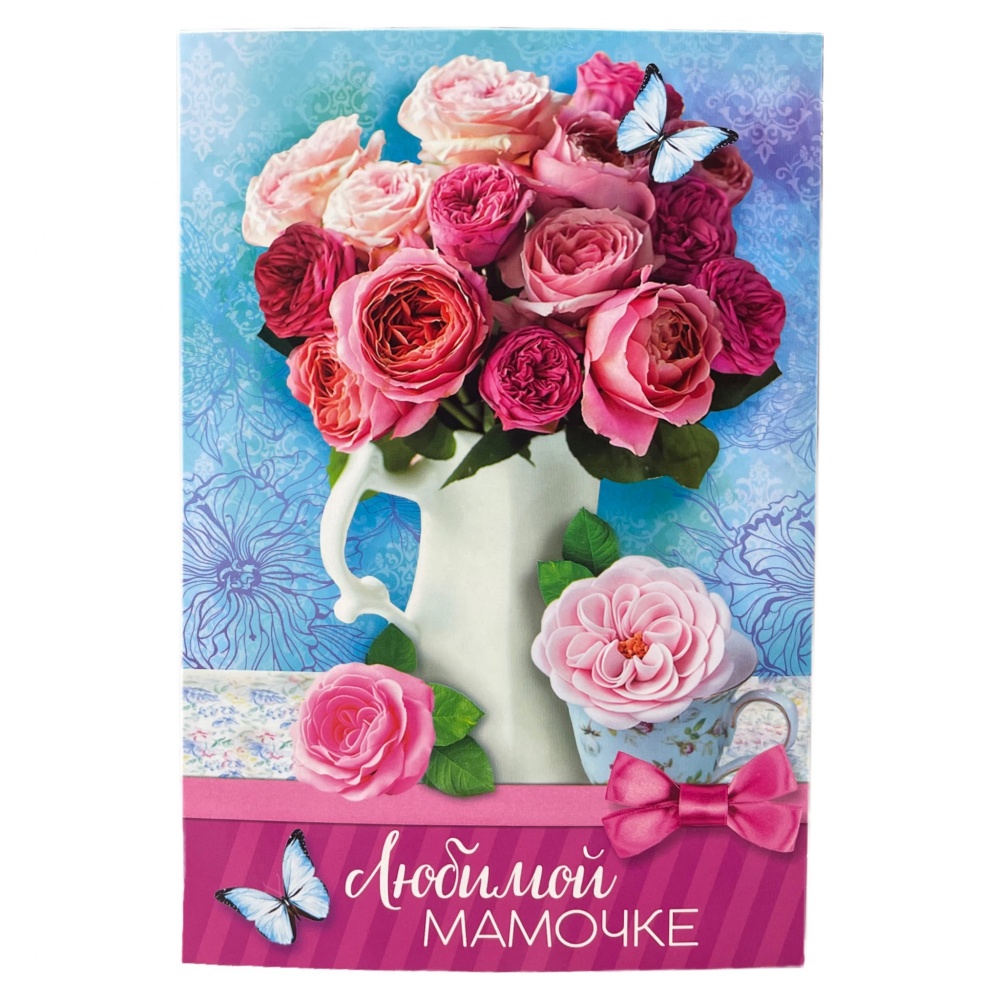 Роза Эквадорская 50см — 3шт, хризантема кустовая — 2шт, статица — 2шт, крафт, лента