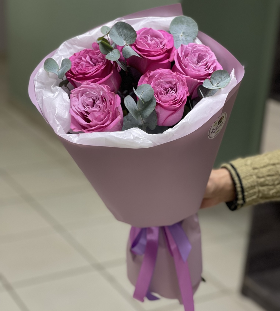 Роза Эквадорская 50см 7шт, фисташка, крафт, лента