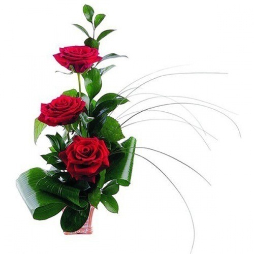 Роза Эквадорская — 3 шт., аспидистра, рускус, берграсс, лента