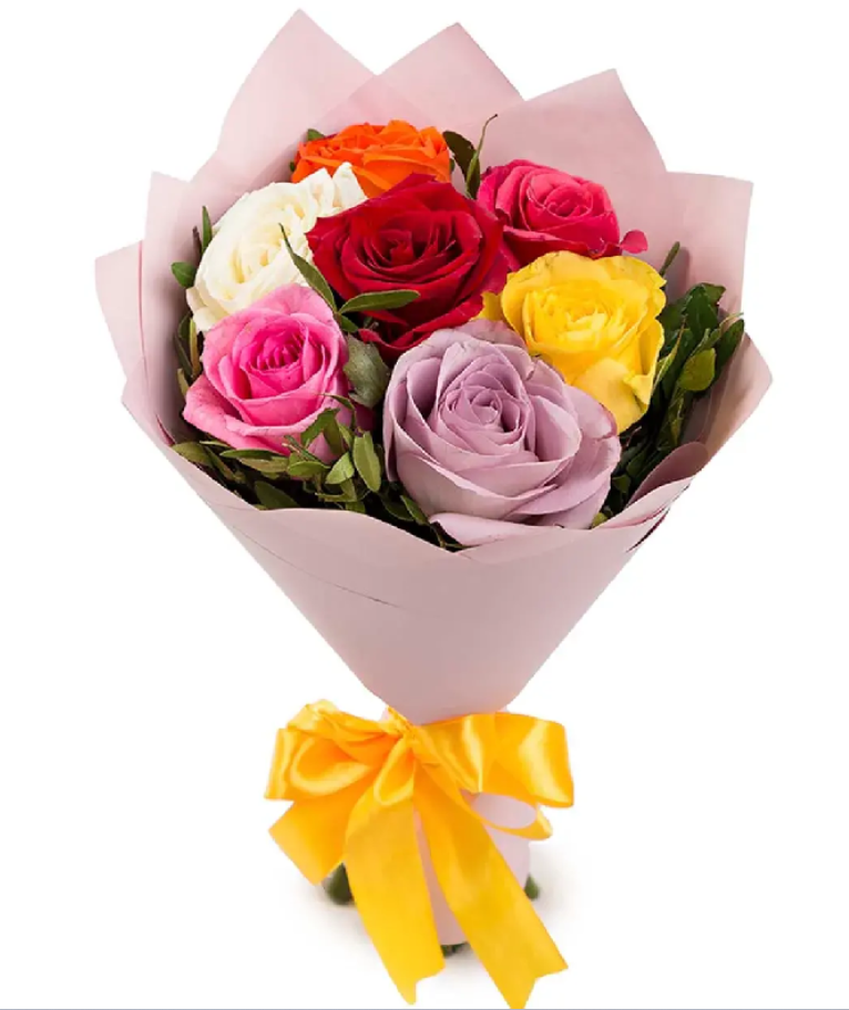 Розы Кения микс 40см 7шт, фисташка, упаковка, лента