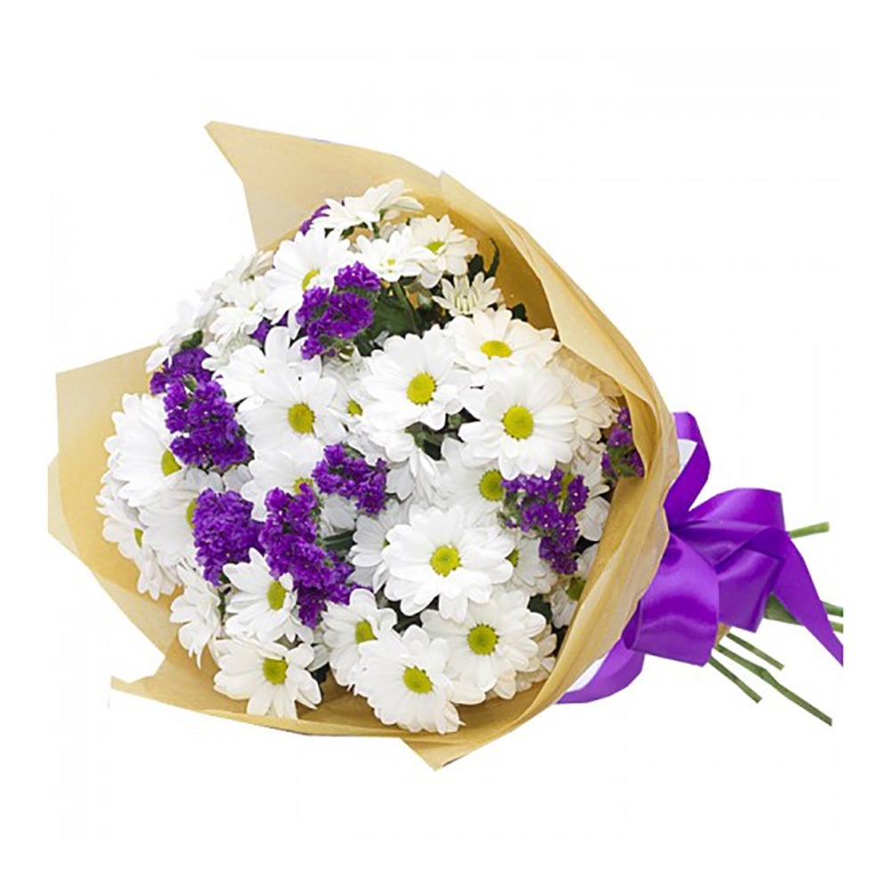 хризантема кустовая — 5 шт., лимониум, салал, крафт, лента, декор