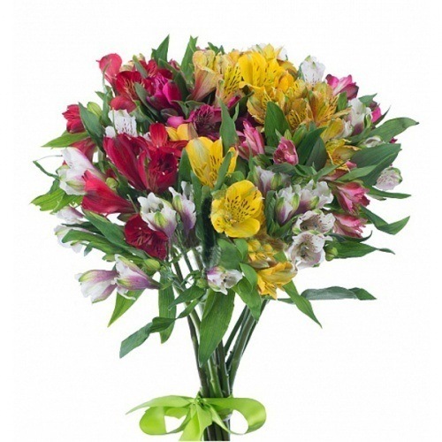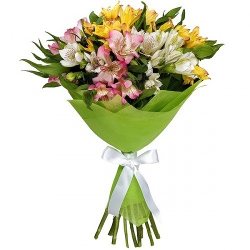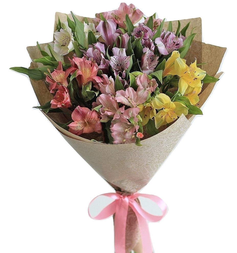 Гербера — 1шт, хризантема кустовая — 3шт, альстромерия — 3шт, лента