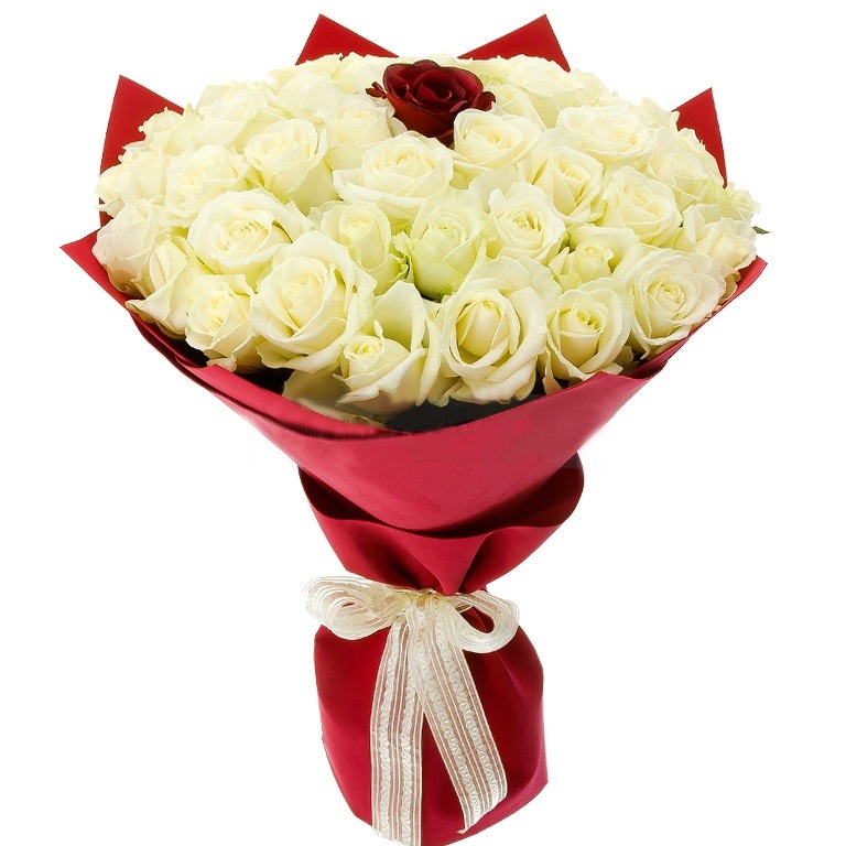 Роза Эквадорская 50см — 31шт, лента