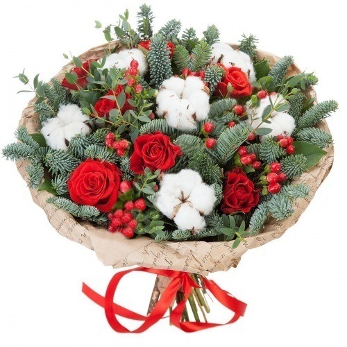 Новогодний букет «Сочельник» в интернет-магазине «Нацвету». При заказе от 2000 рублей доставка по Барнаулу бесплатная (за исключением ночного времени и отдаленных районов).