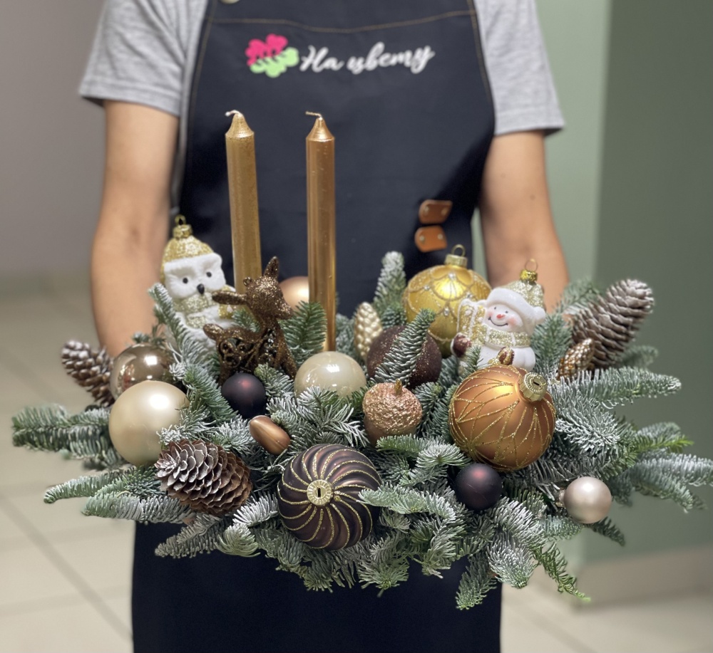 Нобилис, новогодний декор, конфеты раффаэлло 200гр, 2 бутылки для вас в подарок. корзина
