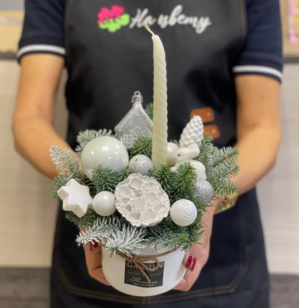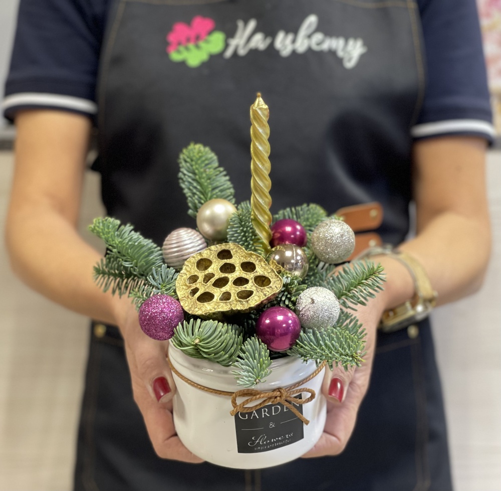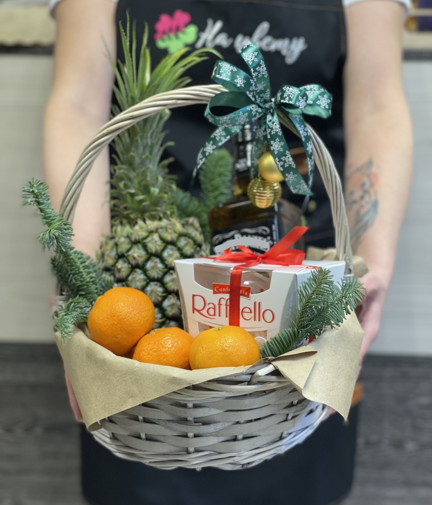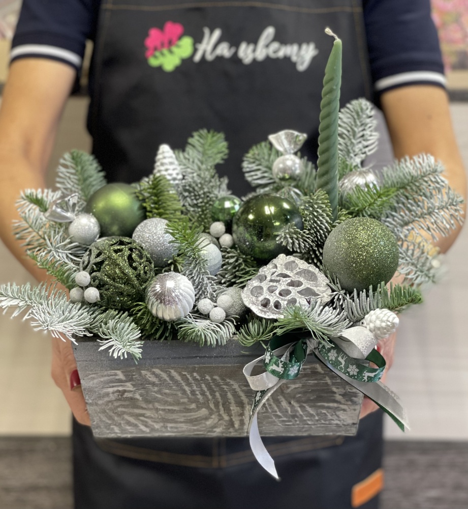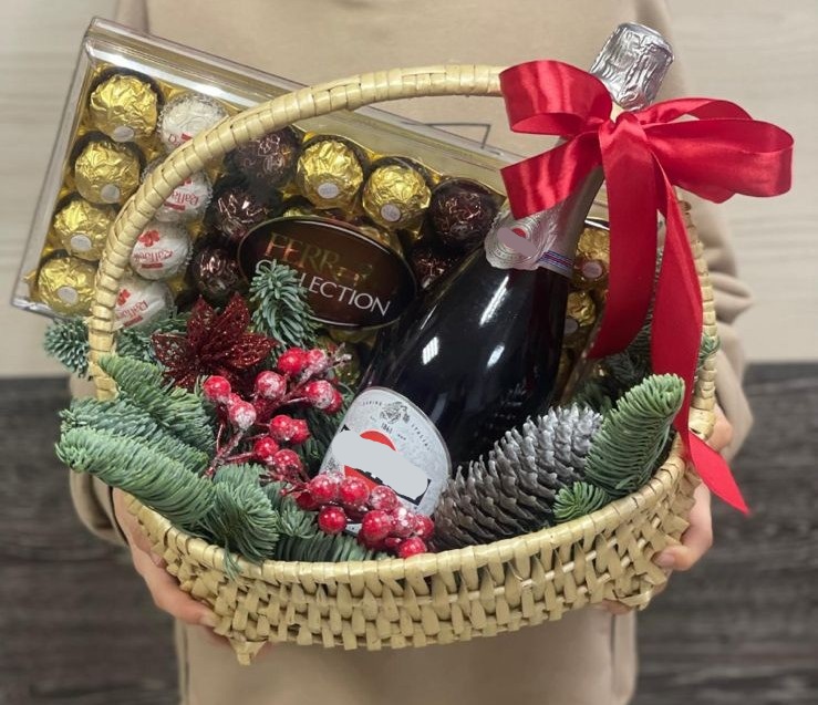 Роза Эквадорская 50 см — 3 шт, хризантема кустовая -2 шт, гиперикум -1 шт, гвоздика 1шт, нобилис, декор, шишка, крафт, лента