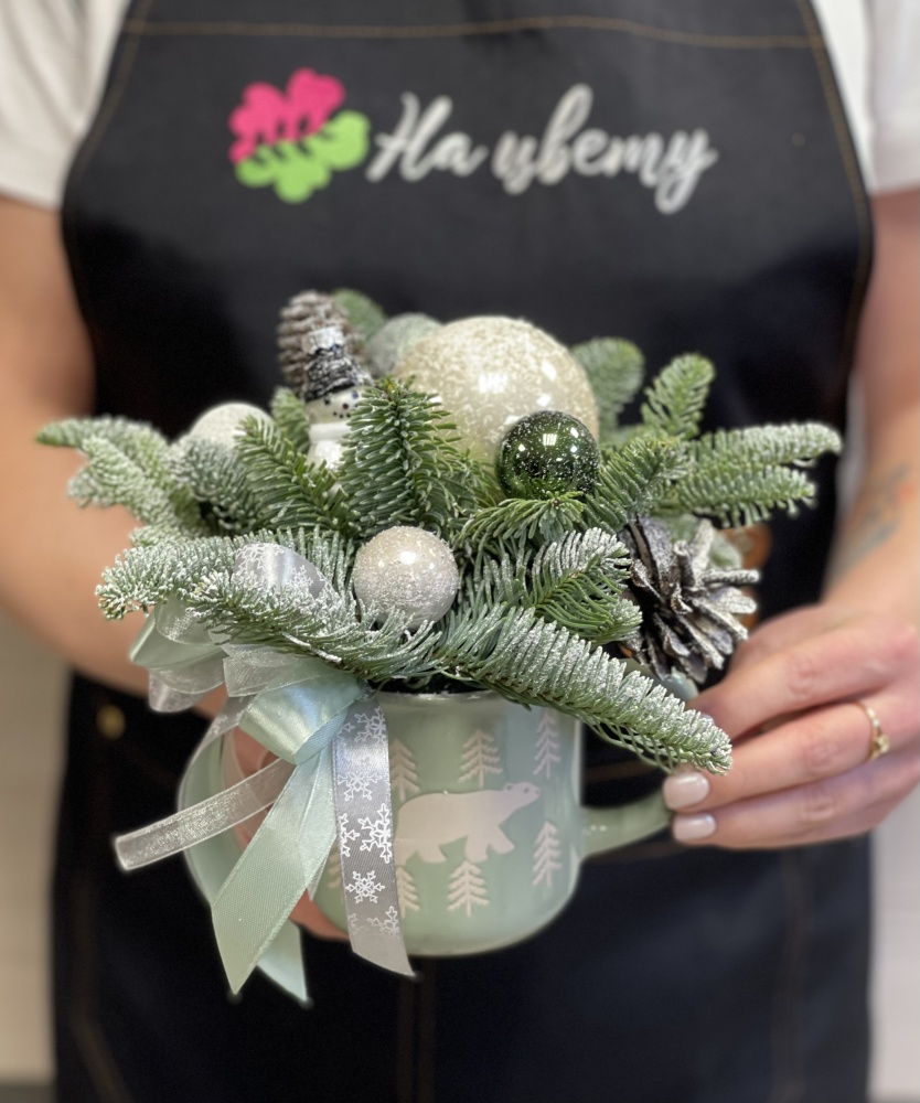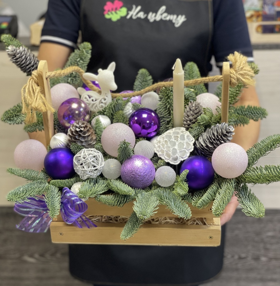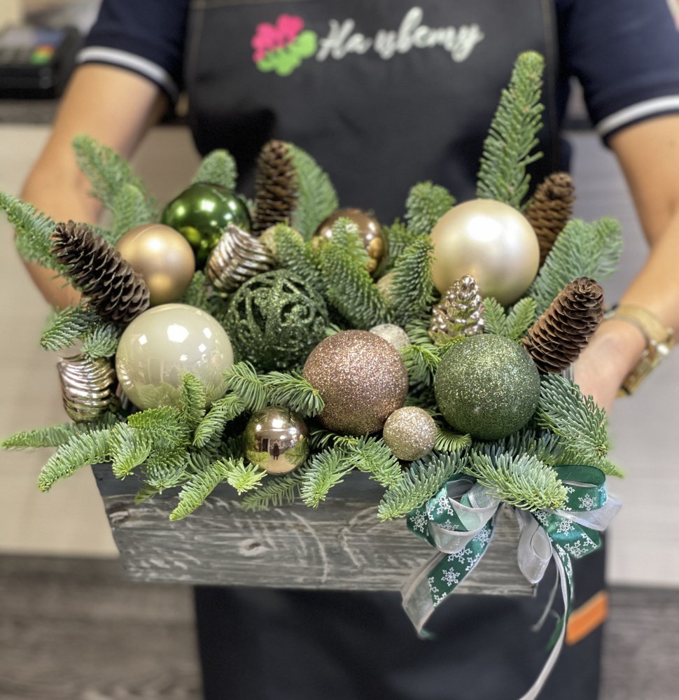 Роза Эквадорская 50 см — 3 шт, хризантема кустовая -2 шт, гиперикум -1 шт, гвоздика 1шт, нобилис, декор, шишка, крафт, лента