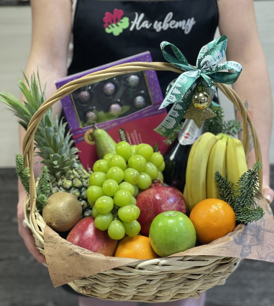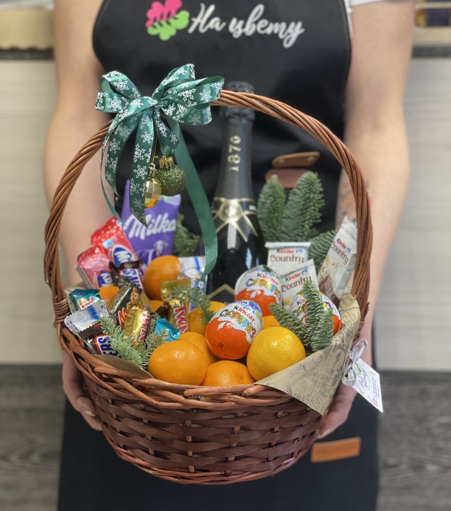 Роза Эквадорская -3 шт, нобилис, Конфеты Раффаэлло 200г, декор, оазис, корзина, лента.