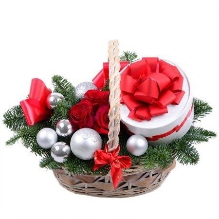 Роза Эквадорская -3 шт, нобилис, Конфеты Раффаэлло 200г, декор, оазис, корзина, лента.Внешний вид композиции может незначительно отличаться от фото.